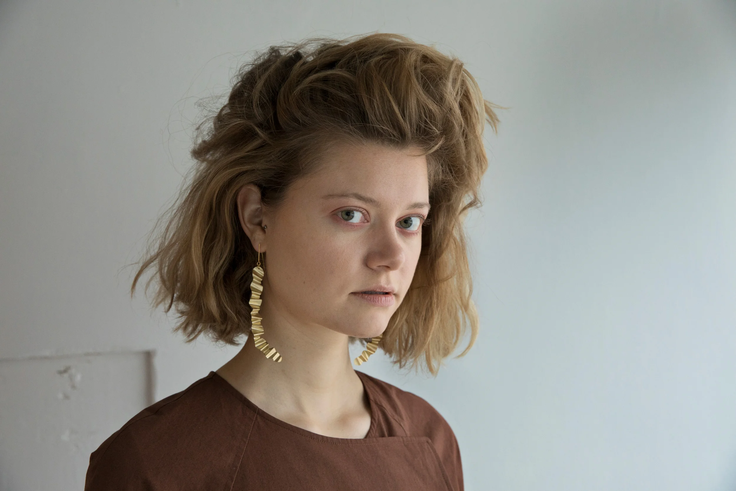 Designer Linda Christiansen in Mold Atelier designed her first collection inspired by her friends. Her sculptural jewellery is handmade in Oslo from thin polished brass sheets.